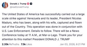 活捉马杜罗 网友称新年第一大喜讯 独裁者不安