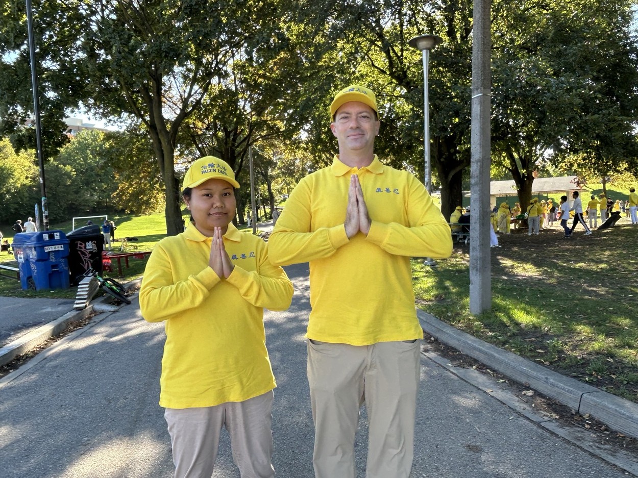 【人民报消息】中秋是团圆的时节,也是感恩的日子。在中秋节即将到来之际,9月28日,多伦多法轮功学员汇集在市中心,向法轮功创始人李洪志先生表达感恩。他们恭祝师尊中秋佳节快乐,感恩李洪志大师把法轮大法传给世人,造福社会,造福人类。 当天,不同族裔、不同年龄的法轮功学员身著鲜亮的黄色炼功服,汇集在绿草如茵的克里斯蒂皮茨公园(Christie Pits Park),围绕在「法轮大法好」的巨型横幅下,通过视频向尊师李洪志先生表达中秋祝福:「恭贺师尊中秋快乐,法轮大法好。」 80后青年感恩