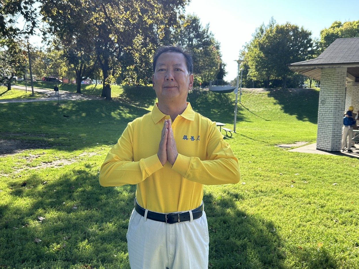 2025年9月28日,多伦多法轮功学员梁圣源恭祝李洪志师父中秋快乐。曾经身患绝症的他说:「我的身体能恢复得这么好,完全得益于修炼法轮大法。」「感恩师父,感恩大法。」(伊铃/大纪元)