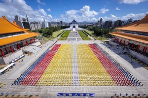 【人民报消息】10月18日,来自台湾、美加日韩、香港等地的部分法轮功学员逾5,000人,在台北中正纪念堂自由广场,排出巨型的“法轮图形及‘法轮常转’”图像,场面殊胜、壮观,向台湾社会传递法轮大法的美好。 据大纪元记者钟元、戴德蔓台湾采访报导,台湾法轮大法学会理事长萧松山教授表示,自1999年7月20日起,中共开始迫害法轮功并延伸至海外。近期,国际媒体与人权组织相继揭露中共在世界多国展开“跨国镇压”,包括对法轮功学员的骚扰、监控与威胁行动;或透过社群媒体平台,以假帐号散播不实讯息,进行认知战;甚至以爆炸与枪击等威胁,试图干扰美国神韵艺术团的演出,引起国际社会的关注。
