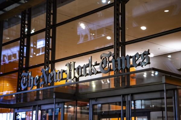 《紐約時報》位於曼哈頓的總部。 (Samira Bouaou/英文大紀元)