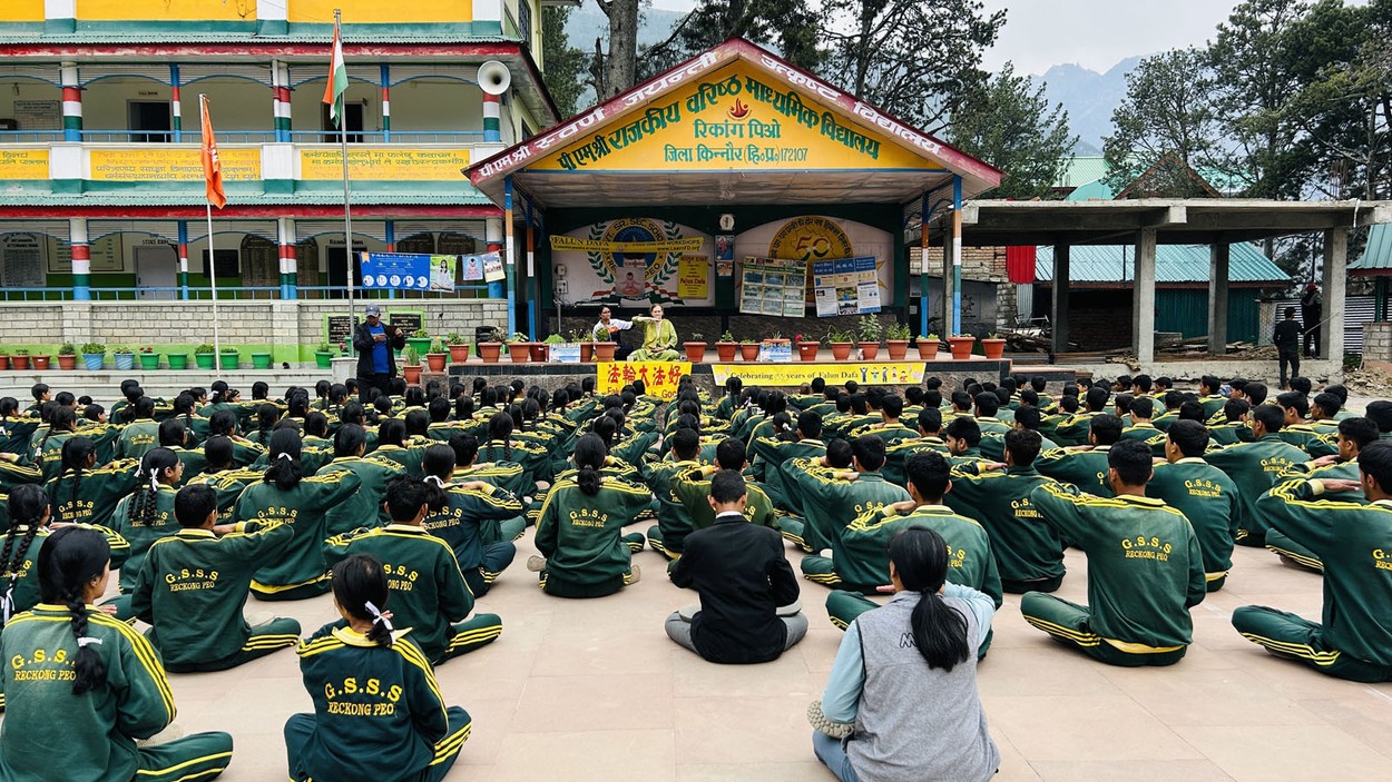 資深教育家:傳播「真、善、忍」是最重要的事 在瑞康佩奧,法輪功學員遇到了一位來自喜馬偕爾邦另一地區的79歲男士,退休前他是一位資深的教育工作者。聽說學員到一些學校洪傳法輪功後,他表達了對法輪功價值觀的敬佩。 他說:「在我從事教育工作四十多年的經歷中,管理過這麼多學校,我覺得自己一無所成,而你們所做的才是真正的、重要的事——傳播『真、善、忍』。」 在學校裡,學生和老師們都積極參加了法輪功介紹班,並嘗試學煉功法。許多孩子學會了說「法輪大法好!」並用這句話來問候這位法輪功學員。老師們也很高興學員能來這裡,幫助他們向學生傳遞美好的價值觀。 煉功後,許多學生表示,他們深感內心的平和與幸福。 學校校長:希望未來能再次合作 喜馬拉雅山區的多位學校的校長向這位法輪功學員頒發了感謝信和證書,感謝她把法輪功帶到學校裡。 其中一所政府學校的校長對她辦班給予了高度評價,他在信中寫道:「法輪功學員的奉獻精神與熱情,以及她清晰的介紹講解和功法演示,使法輪大法的理念變得容易讓人理解和接受。學生們非常投入,對學功也表現出濃厚興趣。我們相信,這次洪法班為他們提供了寶貴的知識,也加深了他們對修煉和自我提升的理解。這樣的活動對拓寬學生的視野、激發全面的教育方法具有重要價值。我們希望未來能再次合作。」 另一所學校的校長也表示,他非常感激學員洪揚正面的價值觀,並喚起人們關注中共對法輪功的迫害。 他寫道:「您努力傳播法輪大法這一強調『真、善、忍』普世原則的深奧修煉方法,令人深感欽佩。此外,我們非常感激您堅定不移地致力於喚起全球民眾對法輪大法修煉者遭受人權迫害的關注,尤其是在中國仍在持續的這場迫害。像你們這樣的組織持續揭示這些關鍵問題,對於促進世界各地的人們加深理解、洪揚善良至關重要。」 △