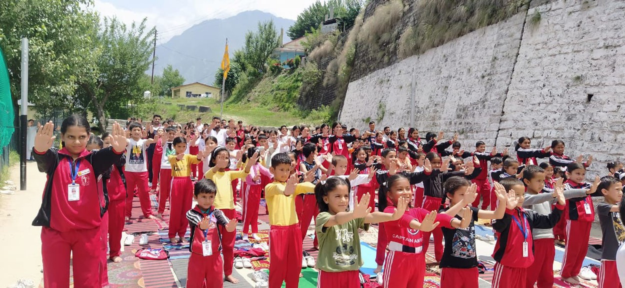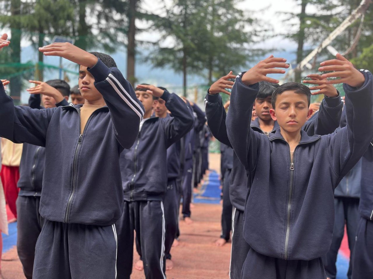 2025年3月至6月,法輪功學員到印度喜馬拉雅山區的學校裡教學生們煉法輪功。(明慧網)