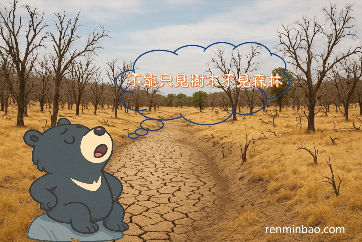 習近平狡辯:不能只見樹木不見森林。(人民報製圖)