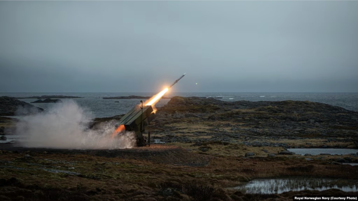 資料照片:2023年5月10日,挪威陸軍在安德亞島進行的演習中針對模擬威脅目標發射國家先進地對空導彈系統(NASAMS)。