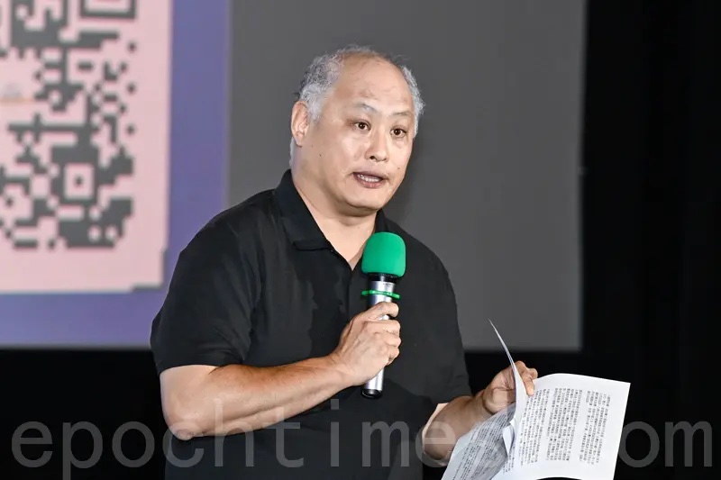 2025年11月23日,自由通讯传播协会举办揭露、透析中共跨国镇压手段的“看不见的长臂:台湾早已身处无声的超限战之中”座谈会。图为台湾人权工作者李明哲出席与谈。(宋碧龙/大纪元)