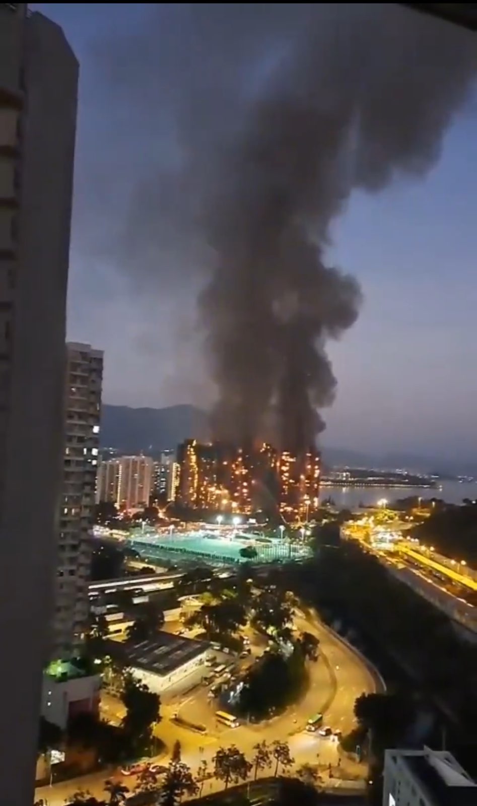 11月27日凌晨,現場仍有四棟樓有火光,樓層間有濃煙冒出,救援仍在持續。整體火勢較26號下午有所減弱,其中,中低樓層的火勢控制得比較好。由於大樓太高,雲梯車無法從最高處滅火,火勢尚未得到控制,甚至有加劇現象。