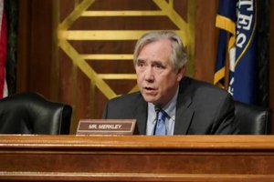 2024年9月18日,聯邦參議員傑夫‧默克利(Jeff Merkley,奧勒岡州民主黨)在有關美國人在中國被拘押的國會聽證會上發言。(Chen Lei/英文大紀元)