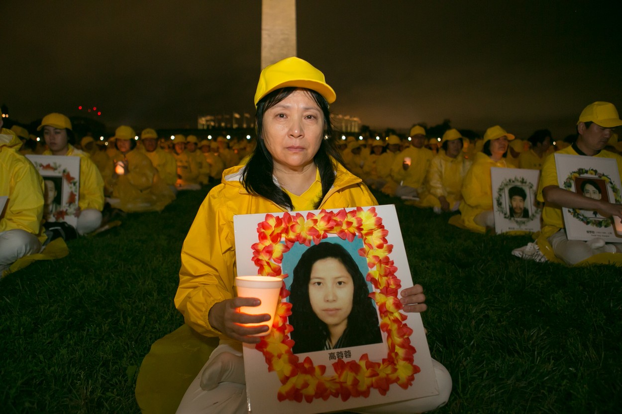 2018年,刘子幸的母亲、高蓉蓉的姐姐高薇薇参加美国首都华盛顿DC的7.20烛光夜悼活动。(李莎/大纪元)