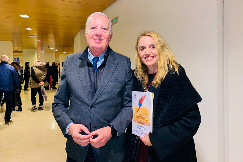 | 2025年3月2日晚,美國神韻世界藝術團在西班牙穆爾西亞市維克多.維列加斯禮堂(Auditorio Víctor Villegas)上演了在當地的第三場演出。醫學專家、穆爾西亞大區議員Antonio Martínez Pastor先生與太太一起觀看了演出。(王亦笑/大紀元) |