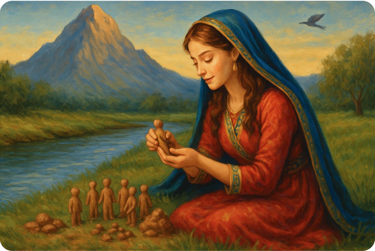 《圣经》中说上帝用泥土造了人,中国传说女娲用泥土造了人,古希腊神话中普罗米修斯用泥土造了人,还有印地安人、迪埃格诺人、希卢克人、印度科尔库人、新西兰毛利人、比兰人、萨卡兰人……他们的神话传说中,都是神灵用泥土仿照自己的形象造了人。几乎世界上所有古老民族的传说中,都是这样。