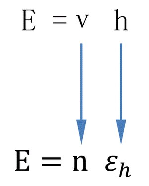 把一個光子看成是更小的能量小組成的,叫基本能量子,也叫h子,它的能量就寫成。一個光子是由多少個h子組成的,它的能量就是多少個。這樣一來,就成了下面的對應關係: