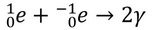 一個正電子和一個負電子相撞,然後都消失了,而出現了一對能量很大的光子——(伽瑪)光子。