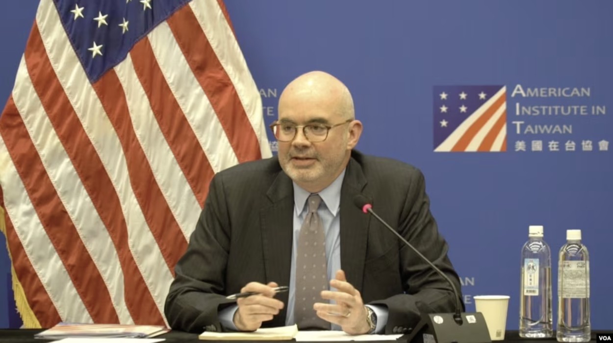 資料照片:AIT處長谷立言(Raymond Greene)2024年9月4日召開上任以來的第一場記者會。(VOA)