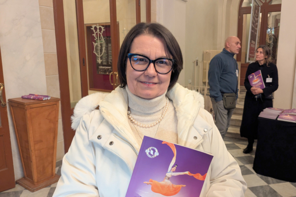 “演出深深地震撼了我。”公司经理Valentina Cheli盛赞神韵演出诠释了创世主降临世间,救赎人类的动人一幕,她感叹道:“我非常喜爱。” Cheli来自利沃诺(Livorno)省的皮翁比诺(Piombino),她在当地一家知名香水公司担任经理20年。Cheli表示,“感谢你们给我这个机会,也谢谢(神韵)来到离我们家这么近的地方。” 当大幕拉开时,Cheli感受到身心的强烈冲击,“我立刻深受震撼”,“因为期待已久,而且我非常开心,真的被深深感动了”。 “那是第一时间的震撼感受。就连坐在包厢里、我并不认识的那位女士也是一样。”她兴奋地说。 “我真的有所感悟。就像我之前提到的,坐在包厢里我旁边的那位女士说‘天使来了’。但那并不是天使,而是创世主。”Cheli说,“因为整个内容谈到的是救赎,这一点我很喜欢。也许我是以基督徒的角度去理解;也许在中国文化中,有道家的修行者,但无论如何,这都是一种向创世主的祈祷。” “我买了那本书(《转法轮》),在等候看演出时我就开始读了,我心想:这不仅仅是艺术,她(神韵)传递的是一个讯息。因为艺术其实都有一个目标,都承载著一个讯息,而这一点我非常喜欢。这是一个我们所需要的、具有普世性的讯息。我一定要对女高音歌唱家表达赞美之意。”Cheli说。 “我最喜欢的是孔雀舞,还有那段水袖舞,舞动时长袖挥舞起来,飘逸灵动、延展开来,真的太精彩了。”她说,“因为他们说长袖舞象征的是天堂中的服饰形象;而孔雀舞则是因为舞台效果,像是云雾营造的舞台效果、天幕背景的特效,都非常美妙、令人惊艳。” Cheli对神韵乐团充满了好奇,“我也好喜欢神韵乐团。我坐得蛮近的,我看到了演奏的音乐家,看到了那种只有两根弦的乐器(二胡),还有一种像是直立式的竖琴,我特别、特别喜欢那个乐器。” 对于神韵艺术团至今仍无法在中国演出,Cheli对此表示不解,“不过幸运的是,目前在全世界竟然有八个(神韵)艺术团在演出。” 她认为在中共极权统治下的中国在“某种程度上来说并不罕见,艺术家无法在中国演出是很习以为常的事情。但同时,这反而可能带来更大的共鸣,因为这种限制也会激起人们的好奇心,反而更想亲自去观看他们的演出。” 最后,Cheli对神韵艺术家表达了真挚的感谢。他说,“感谢他们给我这个机会,也谢谢他们来到这里。” 公司老板观神韵:我为他们每个人点赞
