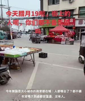 快过年了,许多大城市的街道都出现相同的景象:绝大部分商舖,都关门大吉了。(视频截图)