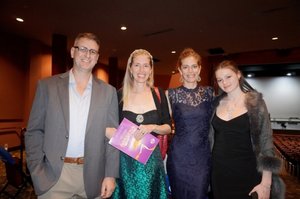 2026年2月11日晚,在美國傑克遜維爾/橙園佛羅里達傑克遜維爾約翰河州立學院長尾鯊號角中心(Thrasher-Horne Center at St. Johns River State College),海軍通信經理Lake Bouder(左一)與太太Teri(左二)以及姐妹Beth(右二)及其女兒Edie(右一)一同觀看了神韻世界藝術團在當地的第二場演出。(林南宇/大紀元)