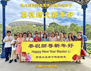 坎培拉法輪功學員向李大師拜年。(明慧網)