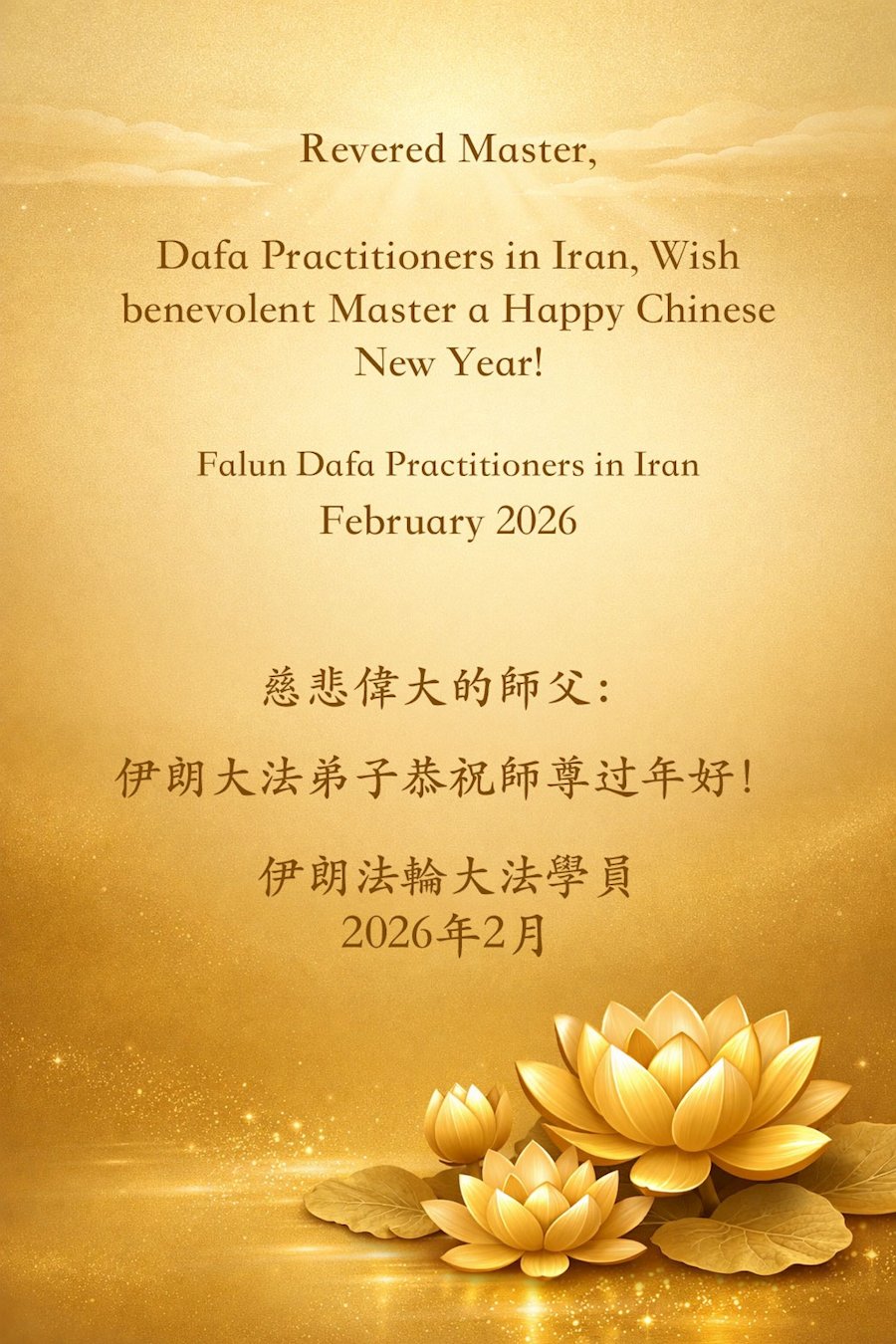 伊朗法輪功學員恭祝李大師中國新年快樂。(明慧網)