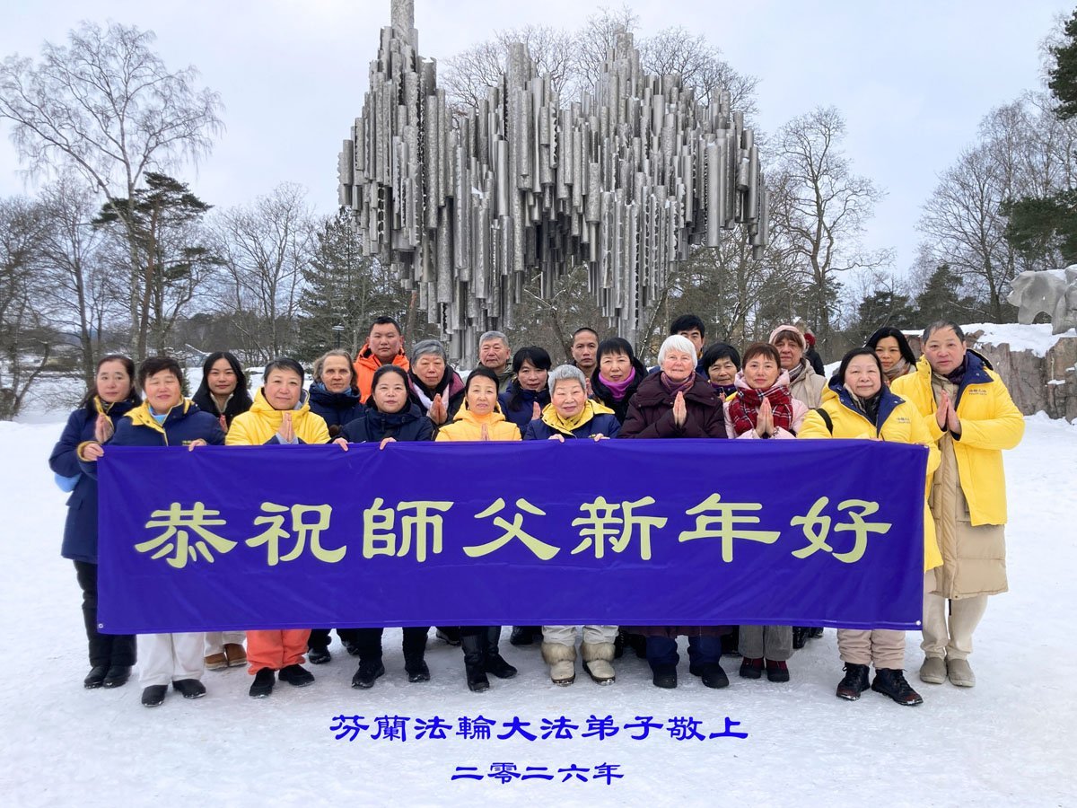 芬蘭法輪功學員恭祝李大師過年好。(明慧網)