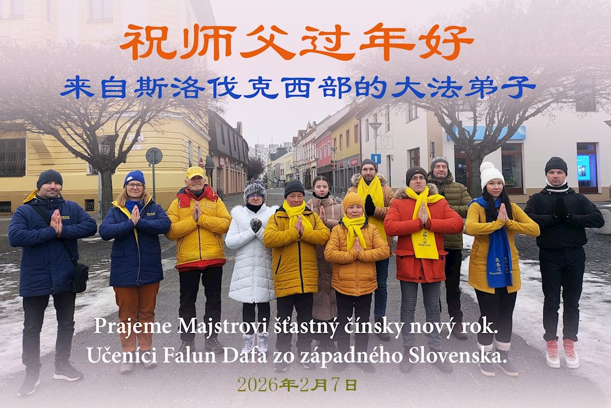 斯洛伐克法輪功學員恭祝李大師過年好。(明慧網)