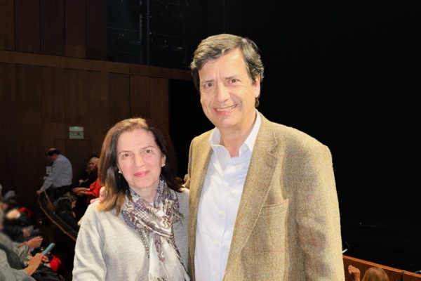 2026年2月26日晚,美國神韻紐約藝術團在西班牙聖勞倫索的聖洛倫索-德埃爾埃斯科里亞爾劇院(Teatro Auditorio San Lorenzo de El Escorial)上演了今年當地第二場演出。西班牙醫療技術公司總裁Oscar Dorado Urbistondo和太太、作家及主持人Estela Santiago Díaz-Ufano一起觀看了演出。(王亦笑/大紀元)