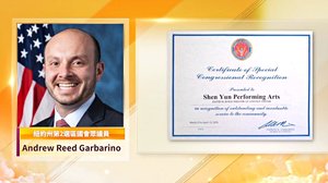 紐約州第2選區國會眾議員安德魯‧里德‧加巴里諾(Andrew Reed Garbarino)向神韻頒發國會特別表彰證書,以表彰神韻藝術團對社區所作出的卓越且無可估量的貢獻。