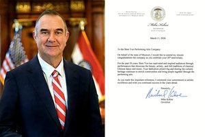 密苏里州州长Mike Kehoe在贺信中说:“致神韵艺术团:我谨代表密苏里州,向贵艺术团致上最诚挚的祝贺,祝贺贵艺术团成立20周年。过去20年来,神韵通过展现中国古典舞与音乐之美、艺术造诣及深厚传统的演出,深深吸引并激励著观众。”