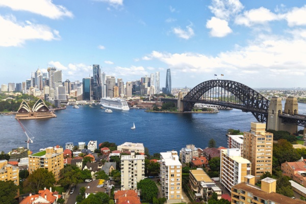 2026年3月24日晚,神韵新纪元艺术团在澳洲悉尼Lyric剧院(Sydney Lyric)第五场演出满场。图为悉尼地标性建筑悉尼大桥和驰名全球的悉尼歌剧院。(陆明/大纪元)