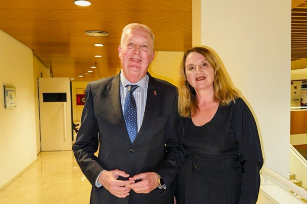 2026年3月28日晚,美國神韻環球藝術團在西班牙穆爾西亞市維克多·維列加斯禮堂(Auditorio Víctor Villegas)上演了當地首場演出。大區議員、醫學專家Antonio Martínez Pastor與太太一起觀看了演出。(王亦笑/大紀元)