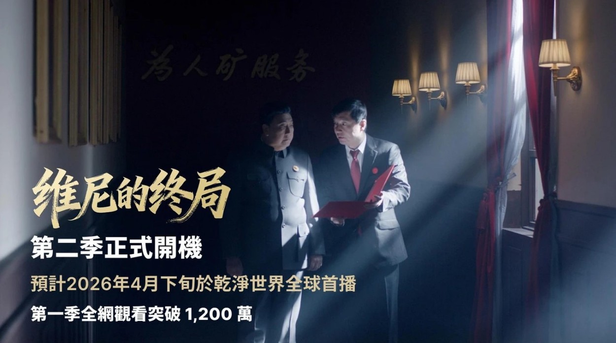 【人民報消息】【2026年3月】備受關注的黑色幽默政治諷刺劇《維尼的終局》第二季近日正式宣布開機拍攝。劇組同步發布多張片場劇照與工作照,宣告這一現象級作品全面進入製作階段。第二季預計將於2026年4月下旬在乾淨世界(Gan Jing World)全球首播上線,乾淨世界會員將可搶先觀看完整內容。 第一季回顧:從爆款到現象級,全網累計觀看突破1,200萬 《維尼的終局》第一季於2025年12月19日乾淨世界首播,全季共6集,每集近20分鐘。自上線以來,該劇迅速在華語觀眾群體中引發廣泛討論,並在多個平台持續傳播,形成罕見的跨平台觀看熱潮。 截至目前,該劇全網累計觀看已突破1,200萬次,相關留言與互動數以千計,成為近年華語原創網絡劇中最受矚目的作品。 觀眾普遍評價本劇「大膽、犀利、信息量巨大」,認為其敘事密度與製作水準「更接近電影級劇集」。