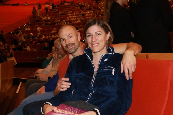 2026年4月12日下午,Arnaud Real先生與Cécile在里昂國際城圓形劇場(L’Amphithéâtre 3000)觀看了神韻演出。(張妮/大紀元)