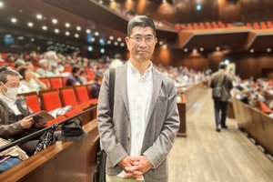 2026年4月13日下午,日本半导体设备的资深专家国香仁(Kunika Hitoshi)观看了神韵新纪元艺术团在八王子J-COM厅(J-COM Hall Hachioji)举行的第二场演出。(徐正/大纪元)
