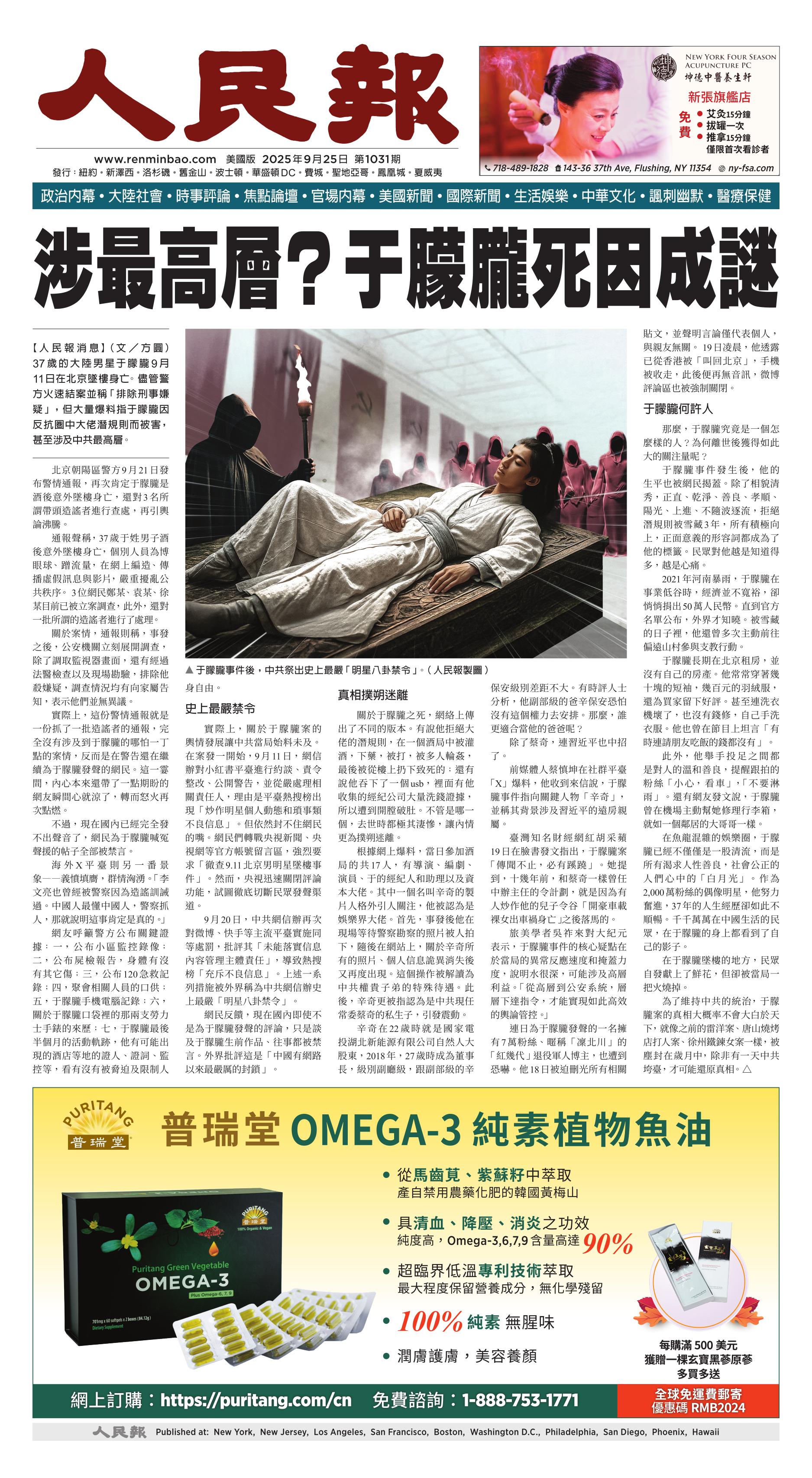 (2025年9月25日)A1版: 头版