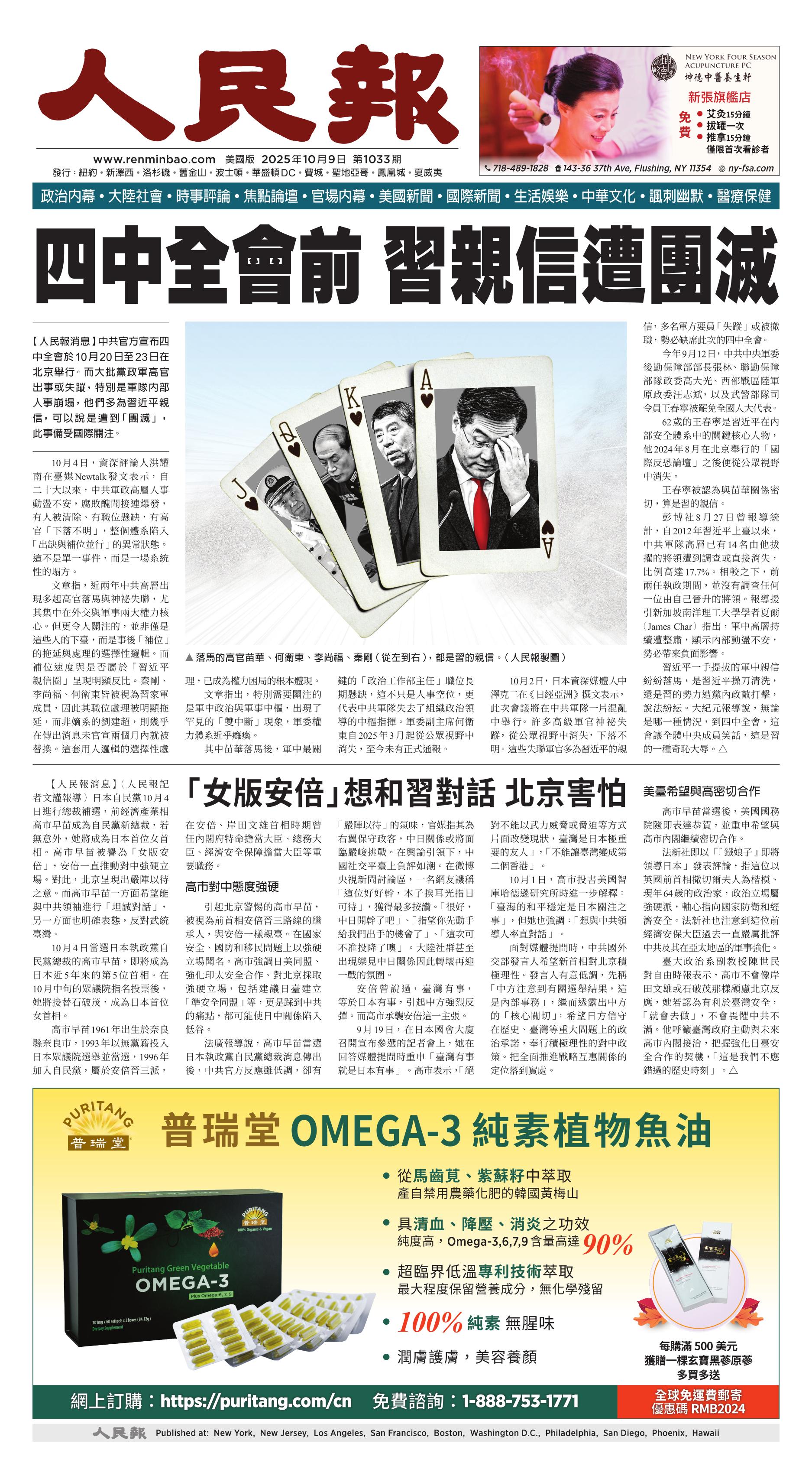 (2025年10月9日)A1版: 头版