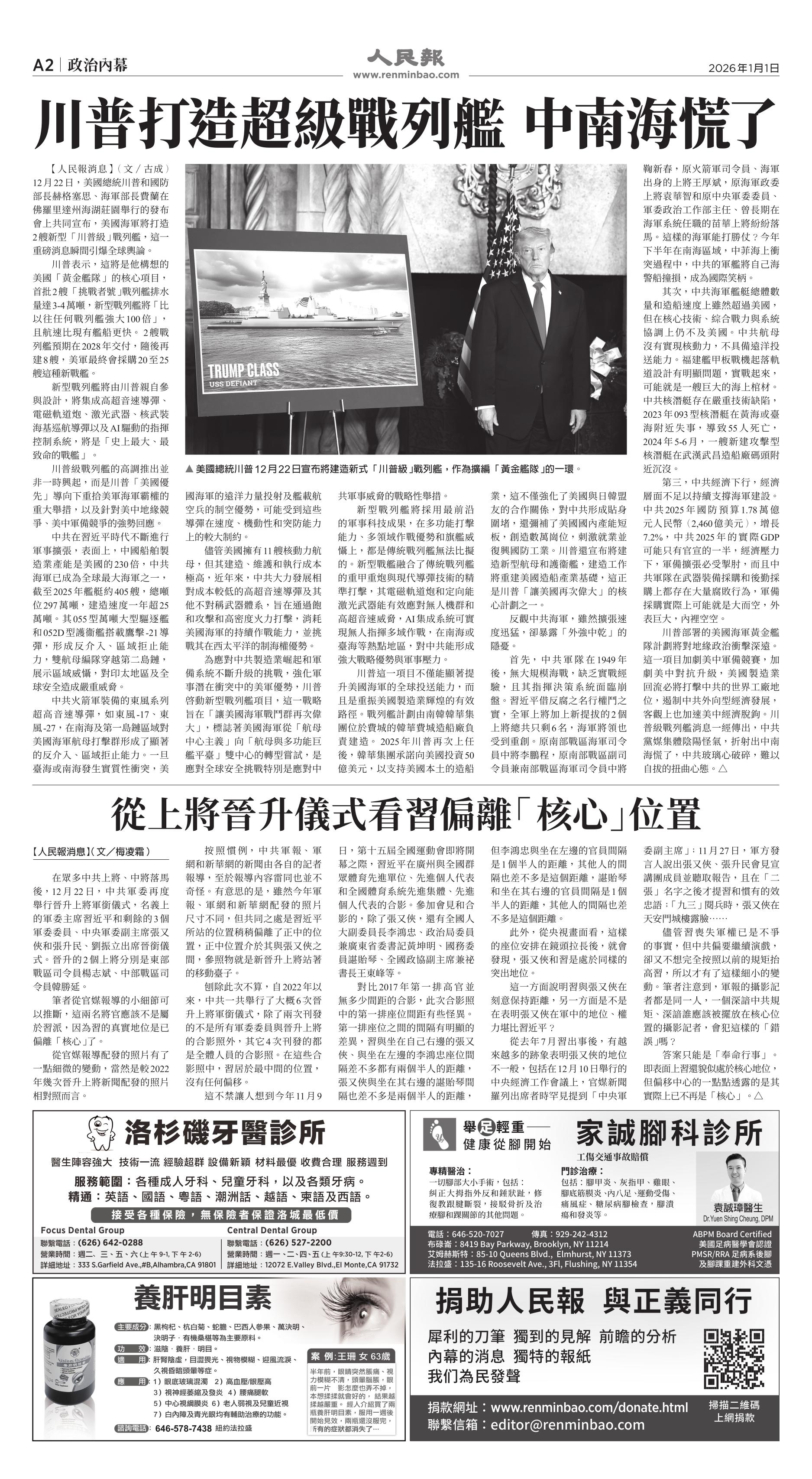 (2026年1月1日)A2版: 政治內幕