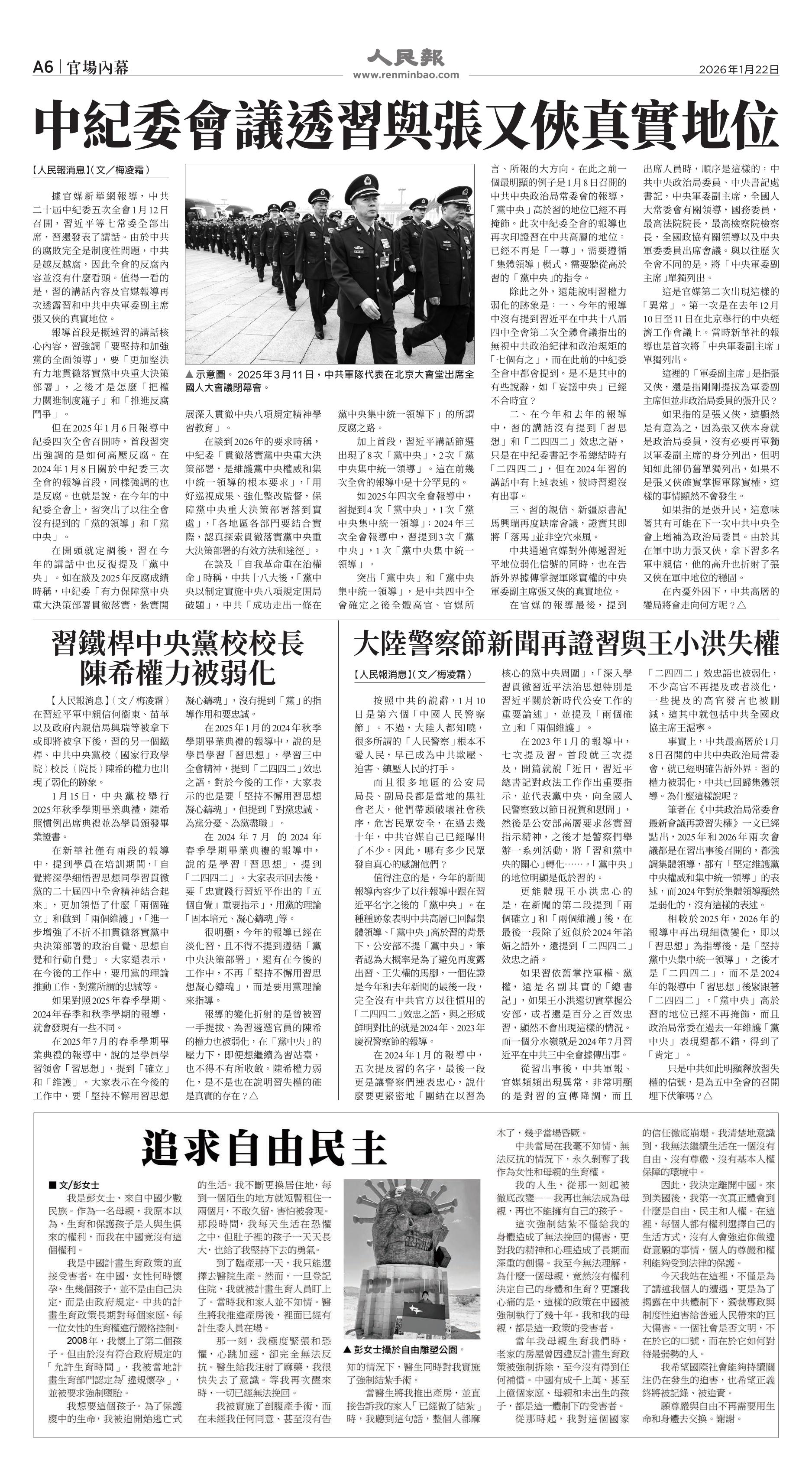 (2026年1月22日)A6版: 官場內幕