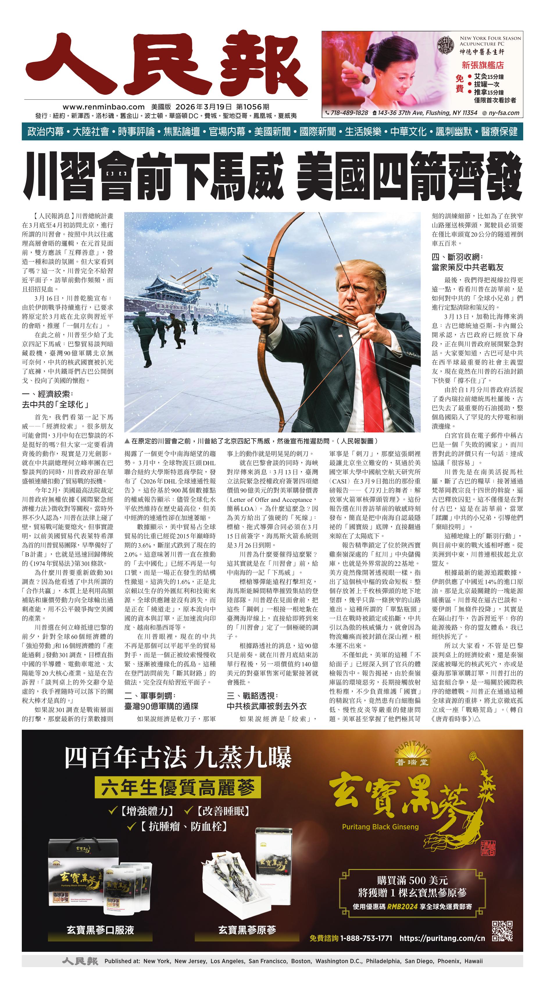 (2026年3月19日)A1版: 头版