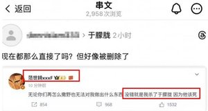 【人民報消息】(人民報記者金欣綜合報導)中國藝人于朦朧上個月11日墜樓身亡,至今已經一個月,目前網友搜出越來越多的證據,幾乎能篤定于朦朧是慘遭虐殺慘死,而非官方所講的單純酒後墜樓身亡。被爆出于朦朧的死脫不了關係的男星范世錡,突然抓狂公開在微博留言說:「就是我殺死了于朦朧」。令外界嘩然。