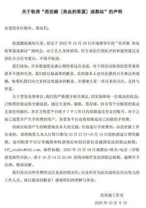憤怒的民眾更發起抵制範世錡的作品和代言產品。範世錡原定於2025年10月18日在成都舉行個人演唱會《熱血的笨蛋》,因網友發起抵制,據傳僅售出15張門票,隨後,範世錡工作室以身體不適為由,取消演出。