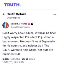 川普10日先是在他的官方社群平台“真实社群”(Truth Social)发文批评北京,称北京向所有国家发送信件,表达出很高的敌意。