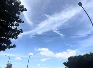 2025年10月17日,台湾新北市板桥的新月会馆,举办于朦胧的招魂法会,天空突然出现鱼状云。(翻拍自于朦胧粉丝团FB)
