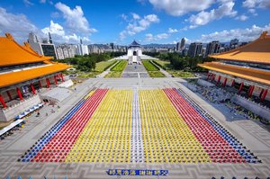 【人民报消息】10月18日,来自台湾、美加日韩、香港等地的部分法轮功学员逾5,000人,在台北中正纪念堂自由广场,排出巨型的“法轮图形及‘法轮常转’”图像,场面殊胜、壮观,向台湾社会传递法轮大法的美好。 据大纪元记者钟元、戴德蔓台湾采访报导,台湾法轮大法学会理事长萧松山教授表示,自1999年7月20日起,中共开始迫害法轮功并延伸至海外。近期,国际媒体与人权组织相继揭露中共在世界多国展开“跨国镇压”,包括对法轮功学员的骚扰、监控与威胁行动;或透过社群媒体平台,以假帐号散播不实讯息,进行认知战;甚至以爆炸与枪击等威胁,试图干扰美国神韵艺术团的演出,引起国际社会的关注。