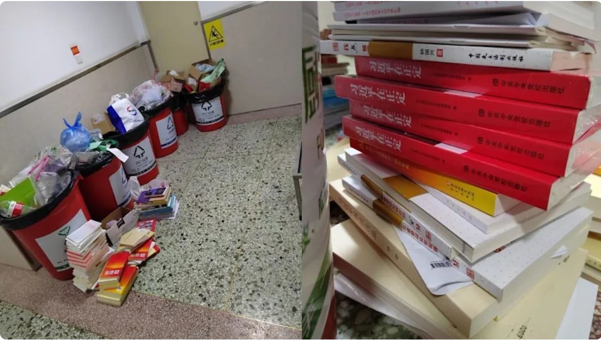 习近平著作被丢在垃圾桶旁。(图/翻摄自X@whyyoutouzhele)