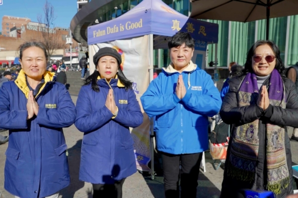 感恩节到来之际,纽约法轮功学员向法轮大法创始人李洪志先生表达心中的感恩,同时也感谢美国政府与人民的接纳和善待。(新唐人电视台)