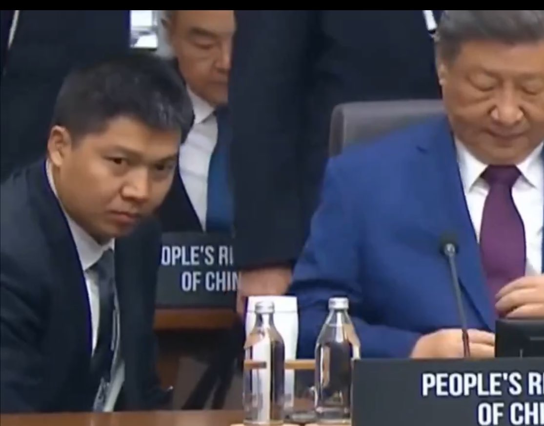 【人民报消息】(人民报记者文谨报导)中共党魁习近平和一众高官出席韩国APEC会议期间,发生许多让民主国家领导人感到不可思议的笑料,成为茶余饭后的谈资。此外,韩国媒体还拍下诡异一幕,在习近平刚刚落座时,一名随身侍卫随即上前,悄悄递给他三样东西。网民猜测,习近平疾病缠身,特工给他送的东西,其中有药。 前媒体人“@Fangliusy”在海外X平台贴文说:“习近平这罕见一幕被韩国记者拍下来了”。视频显示,在韩国庆州举行的APEC会议上,习近平刚一落座,一名中国男子随即上前,先把一个白色的保温杯放在桌上,然后蹲下,从衣服下方的口袋掏出一叠疑似面巾纸,再从胸前口袋拿出一个类似眼镜盒的东西。这名男子把这些物品摆在习近平的桌上时,表情紧张,眼睛还不时警觉地斜视四周,让人感觉鬼鬼祟祟,似乎担心被人发现。 贴文还说:这些物品“竟然不是装在正规收纳包内!第一样是杯子,是药还是茶?不知道,估计是药;第二样是发言用的资料小卡片吗?第三样应该是眼镜”。