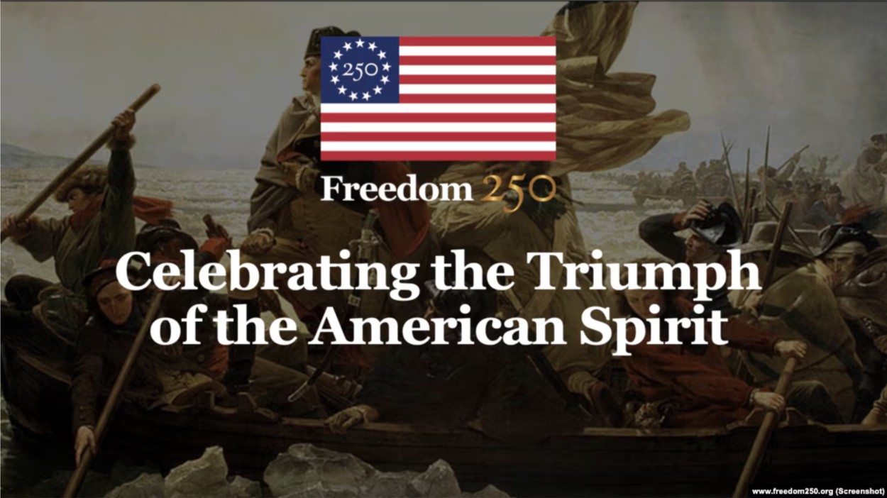 唐納德.川普總統為領導美國250週年誕辰慶典活動推出的「自由250」登陸頁面。