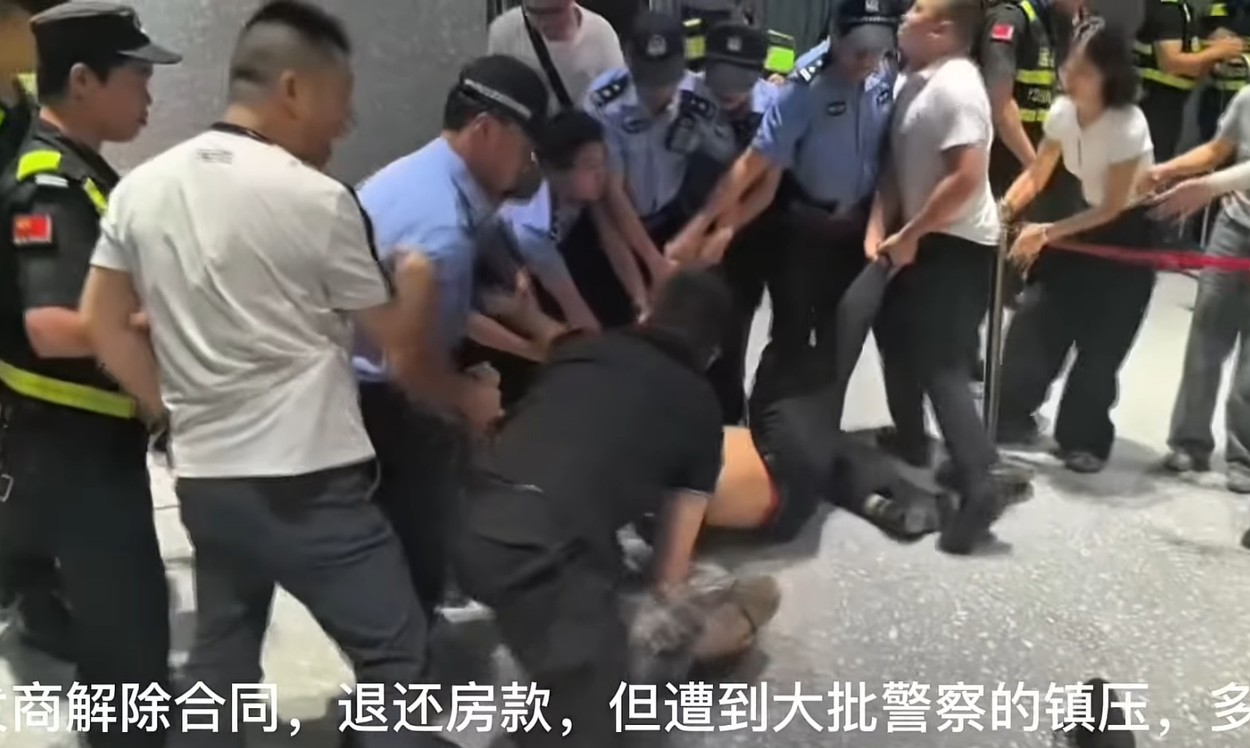 9月12日,四川眉山仁壽縣,數百名融創未來城業主發起維權行動,要求開發商解除合同,退還房款,但遭到大批警察鎮壓。(視頻截圖)