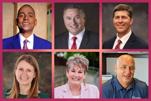 神韵2026演出季开启前,德州再有六城市市长褒奖神韵艺术团。以城市人口为序,自左至右、自上至下依次为:埃尔帕索市市长雷纳德‧Y‧强森(Renard Y. Johnson)、麦卡伦市市长哈维尔‧维拉洛博斯(Javier Villalobos)、加兰市市长迪伦‧赫德里克(Dylan Hedrick)、朗维尤市市长克莉丝汀‧石原(Kristen Ishihara)、塞金市市长唐娜‧多根(Donna Dodgen)、伯尼市市长法兰克‧里奇(Frank Ritchie)。(大纪元合成)