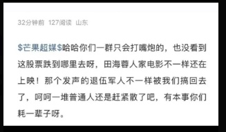 芒果超媒在前几天注入资金,力图保住股价,然后还洋洋得意的发帖讽刺网友“只会打嘴炮”,“也没看到这只股票跌到哪里去呀,田海蓉人家电影不也一样还在上映!那个发声的退伍军人不一样被我们搞回去了。”